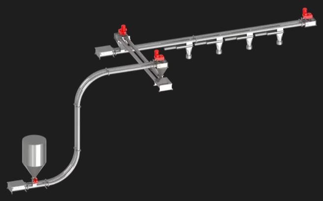 Het belangrijkste kenmerk van een flexibele schroeftransporteur is de flexibele spiraalvormige buis, die het mogelijk maakt om materialen te verplaatsen rond bochten, hoeken en andere obstakels.